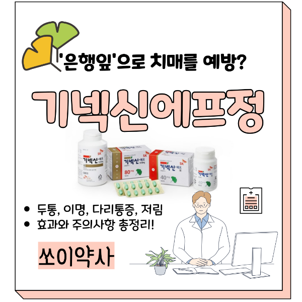 기넥신에프정 80mg 약에 대해서 들어보셨나요? 기넥신에프정은 약국에서 일하면서 어지럼증이나 이명 처방으로도 종종 접하곤 했습니다. 기넥신에프정은 대표적인 혈액순환용제로, 다양한 질환에 처방되는데요. 약국에서 일반의약품으로 한 박스씩 구매하시는 분들도 계십니다. 이번 포스팅에서는 기넥신에프정의 효능과 용법, 그리고 부작용과 주의사항에 대해서 알아보겠습니다. 혹시 내시경이나 치과 치료, 수술 계획이 있거나 하시다면 더 집중해주세요.
