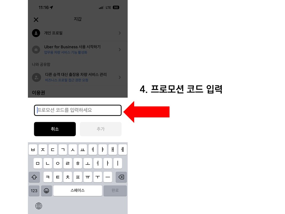 우버택시 프로모션 코드 등록 방법