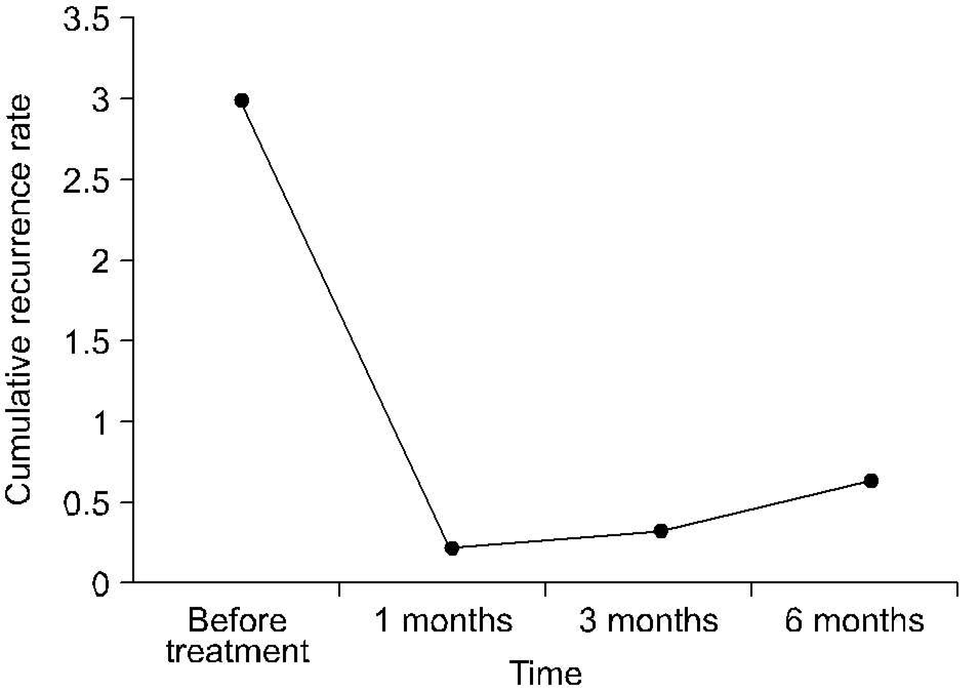 국내 여러 대학병원에서 재발성 방광염이 있는 여성들 50명을 대상으로 3개월간 연구한 결과, 유로박솜 복용 환자들의 방광염 재발율이 6개월 평균 3.0회에서 0.64회로 유의미하게 감소했습니다. (p<0.001)